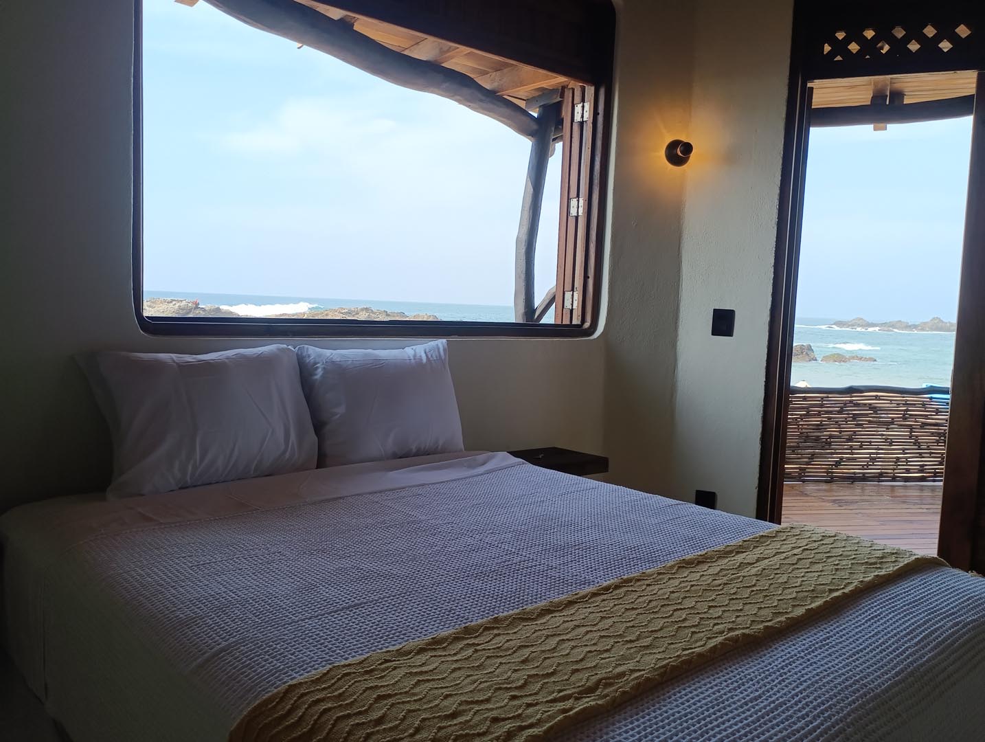 Habitación en planta baja con vista premium al mar. Terraza privada equipada con hamaca y sillas, ideal para relajarse con la brisa marina y el sonido de las olas.